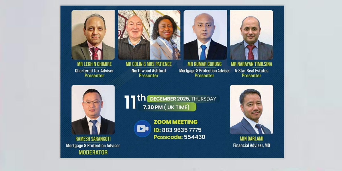 कार्यक्रमको सहजीकरण गरिरहेका ए स्टार मोर्गेजेजका मोर्गेज एण्ड प्रोटेक्सन एडभाइजर रमेश सारनकोटीले बैंक अफ इङ्ग्ल्यान्डले वर्षमा आठ पटक ब्याजदर समीक्षा गर्ने गरेको र यस वर्षको अन्तिम समीक्षा १८ डिसेम्बरमा हुने जानकारी दिए । ‘सम्पत्ति (प्रोपर्टी) क्षेत्रमा लगानी गर्ने लगानीकर्ताहरू नियम–कानुनको पूर्ण पालना गर्न अझ सचेत र जानकार हुन आवश्यक छ। तर यस विषयमा अनावश्यक चिन्ता लिनुपर्ने अवस्था छैन । जहाँ प्रतिफल हुन्छ, त्यहाँ मेहनत पनि आवश्यक हुन्छ । सरकारको रणनीति निजी तथा साना घरधनीलाई अझ जिम्मेवार बनाउनेतर्फ केन्द्रित देखिन्छ । यद्यपि निजी घरधनीले नयाँ नियमन तथा मापदण्डहरू पालना गर्नुपर्ने हुन्छ, तर प्रोपर्टी लगानी अझै पनि सबैभन्दा बलिया लगानी क्षेत्रहरूमध्ये एक हो । २५% डिपोजिटमा लगानी गरेर १००% इक्विटी वृद्धि प्राप्त गर्न सकिने सम्भावना रहन्छ, तर यो सही स्थान, सही मूल्य, गहिरो अनुसन्धान तथा सही परामर्शमा निर्भर गर्छ,’ उनले भने ।